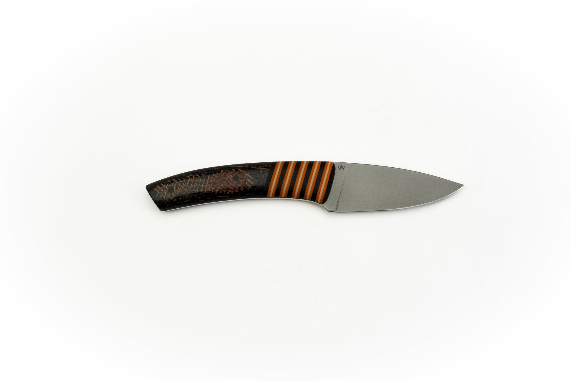 Handle Construction: Full Tang, Burlap "Burl" Micarta w/ Paper G-Carta Bolster, Carbon Fiber Liners & Carbon Fiber Pins, Kydex Sheath with Slim UltiClip