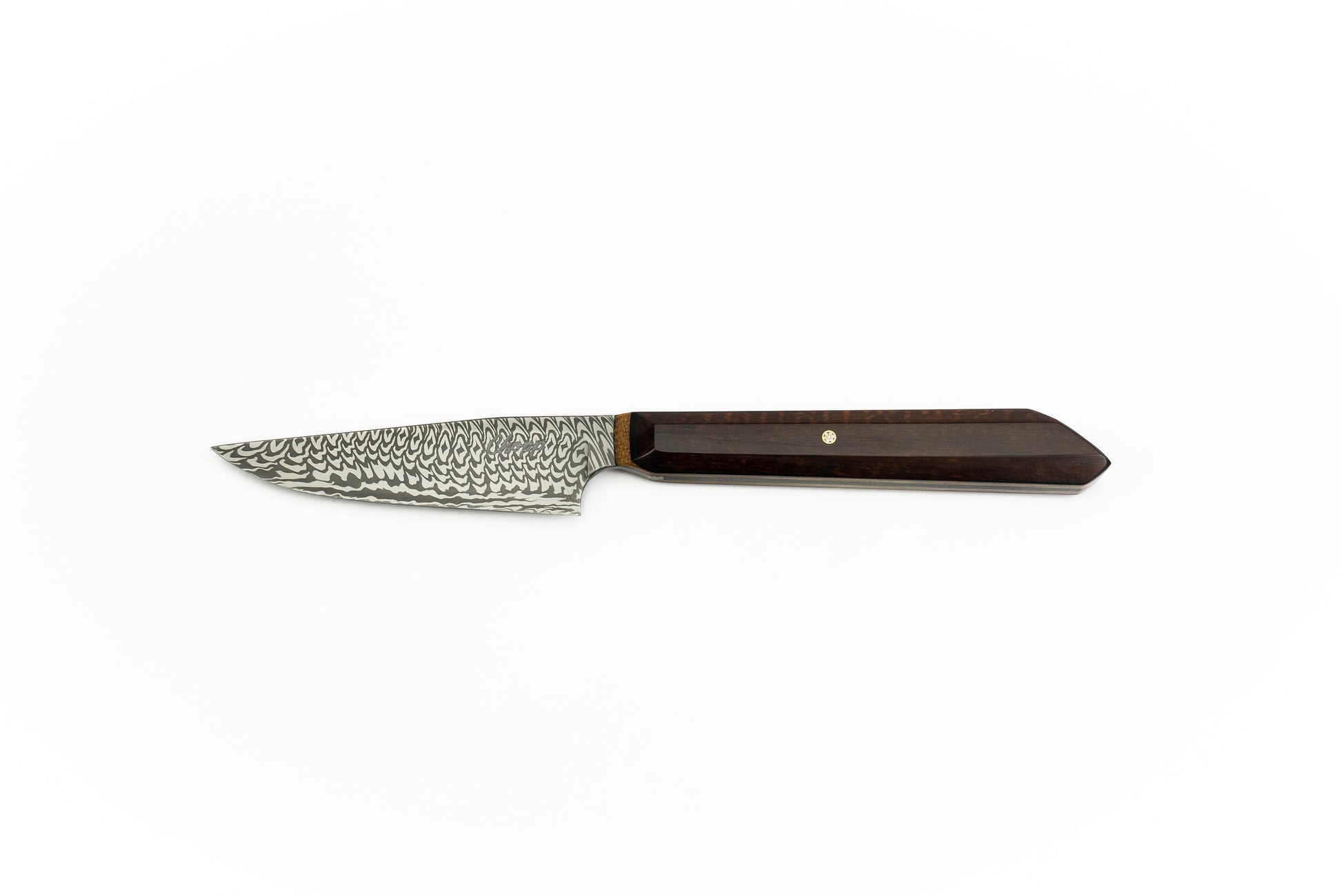 A small and versatile kitchen knife used for more control over precise tasks such as fine mincing and peeling. Generally a touch more compact than its comparable counterpart the petty knife.