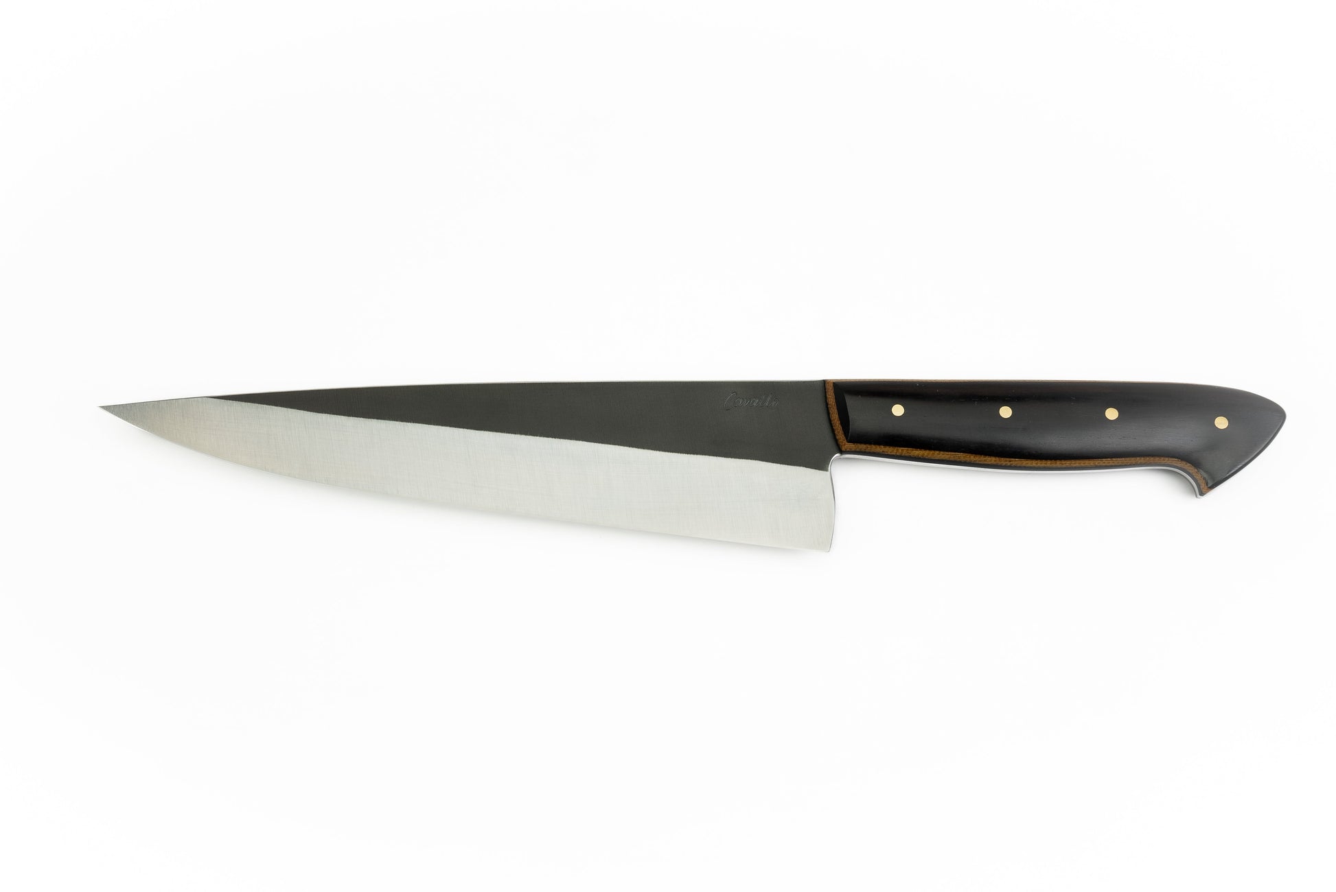 A Chef's Knife is the western equivalent of the Japanese Gyuto. Featuring a tapered spear shaped profile with a pointed tip used for slicing chopping dicing with precision.
