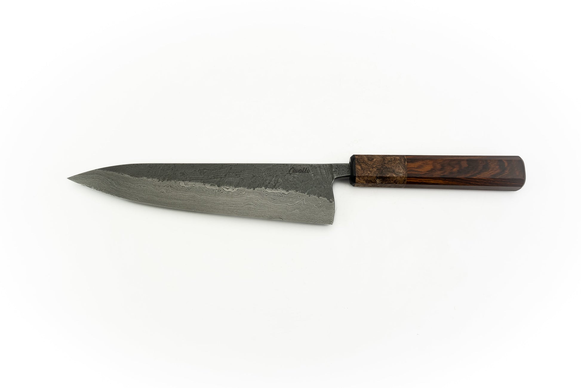 Gyuto is the Japanese equivalent of the Western Chef's knife. Its origins lie in cutting large pieces of beef, but now it is one of the most popular and versatile profiles, used for a variety of tasks - anything from meat and fish to vegetables and herbs.